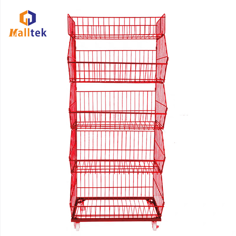 Aangepaste Supermarkt Rollende Metalen Draadcontainer Promotie Gaaskooi Met Wielen